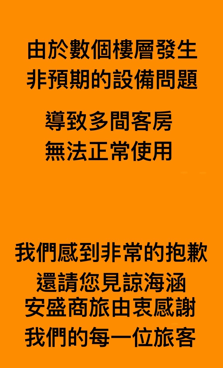 》由於數個樓層設備發生非預期問題,因此大多數客房無法正常使用