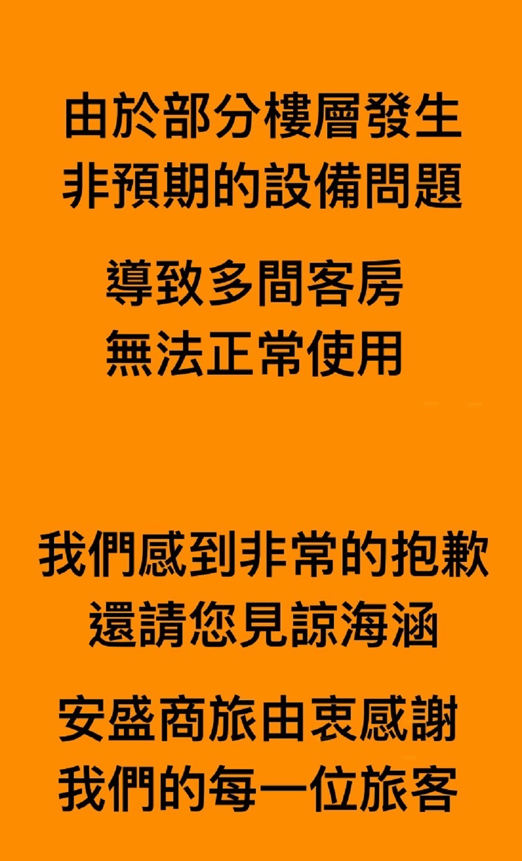 》由於部分樓層設備發生非預期問題,因此大多數客房無法正常使用